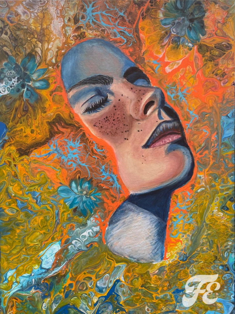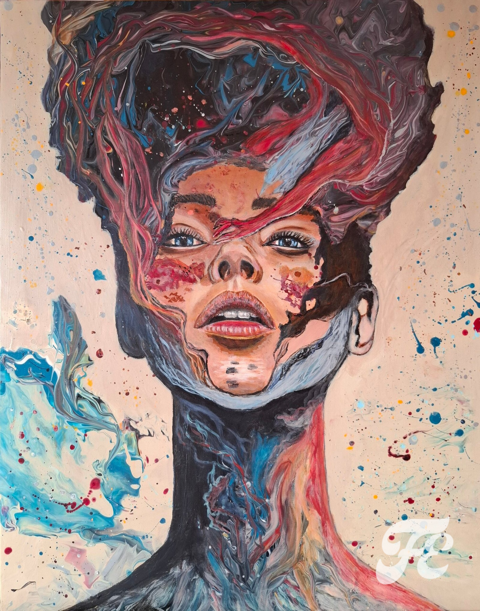 En los comienzos, indagué y me formé sobre las distintas técnicas de acrílictos fluidos (pouring), una técnica que me fascinó desde el primer momento. Me sumergí en su estudio y aprendizaje, experimentando con colores, formas y texturas, buscando siempre transmitir emociones y sensaciones a través de la abstracción.